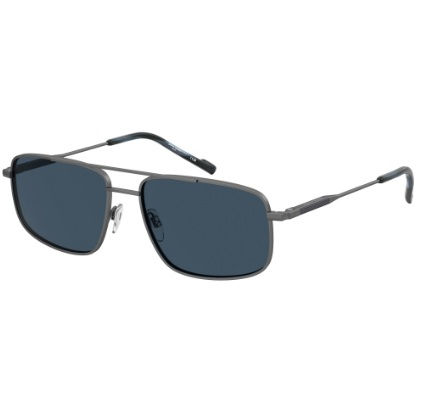 La montura metálica en acabado mate (ruthenium) ofrece durabilidad y un aspecto atemporal, mientras que las lentes de color azul añaden un contraste atractivo y actual al conjunto. Con un filtro UV400, estas gafas bloquean eficazmente los rayos UVA y UVB, protegiendo tus ojos de la radiación solar dañina incluso bajo luz intensa.